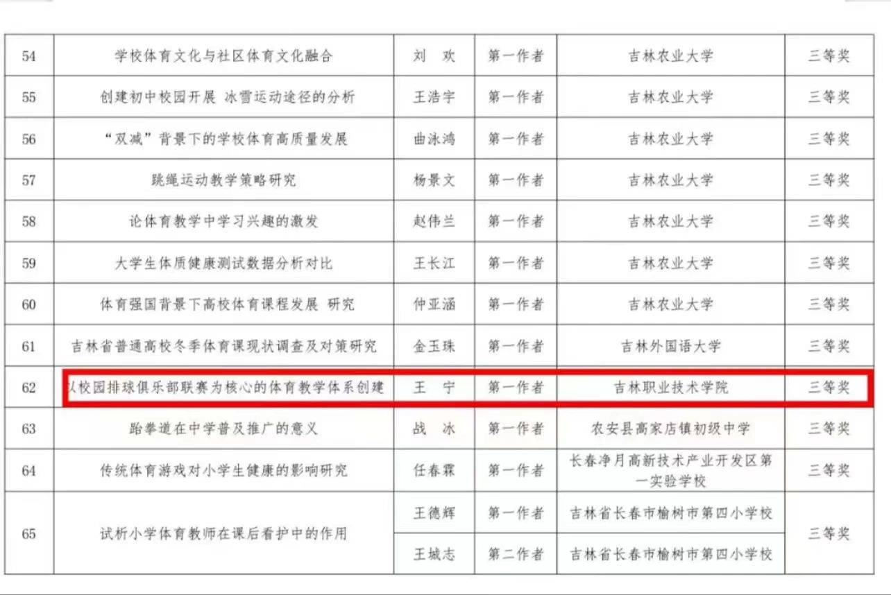 喜报丨我校荣获吉林省教育厅征集第一届全国学生(青年)运动会科学论文三等奖