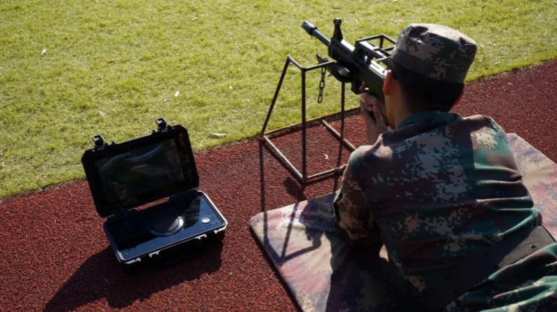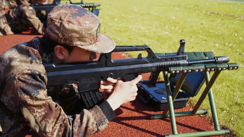 大学生预备役连新成员20人一组,分组射击,五发练习,五发实战,这是一场技术与细心的角逐。场内模拟枪声此起彼伏,场外更是传来阵阵惊呼,宣布成绩的声音刺激着每位在场成员的听觉神经。激光射击、自动记录、影像逼真、随时调试……这是科技的力量,是信息化的特色活动。