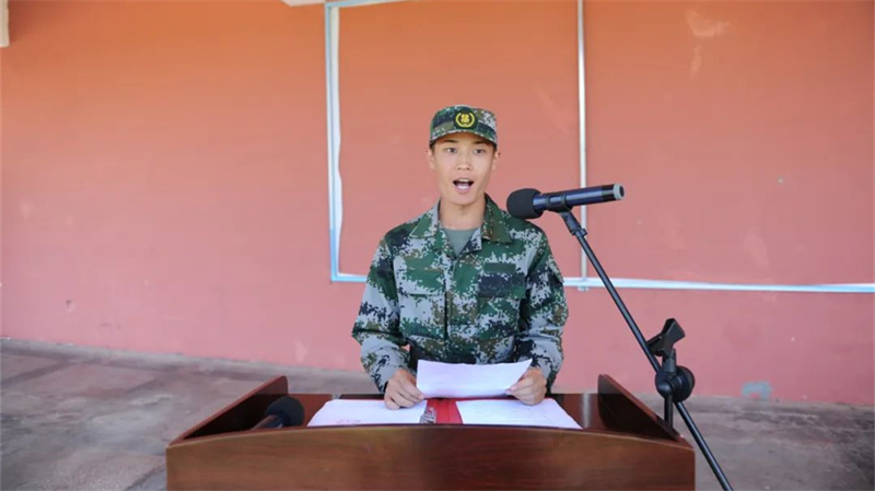 经济管理学院22级大数据会计专业学生王瑛琦代表全体教官表示,将服从命令,以身作则,时刻保持军人姿态、严格落实军训计划,切实加强安全管理,确保圆满顺利完成军训任务。医药学院康复治疗技术专业学生于博代表全体新生表示,将主动投入军训、积极对标看齐、严格遵守纪律、锤炼意志品质、轻言放弃、展示真我风采。