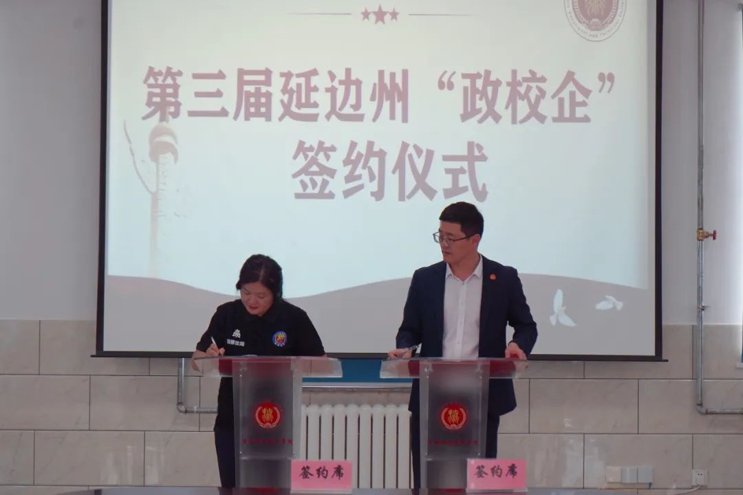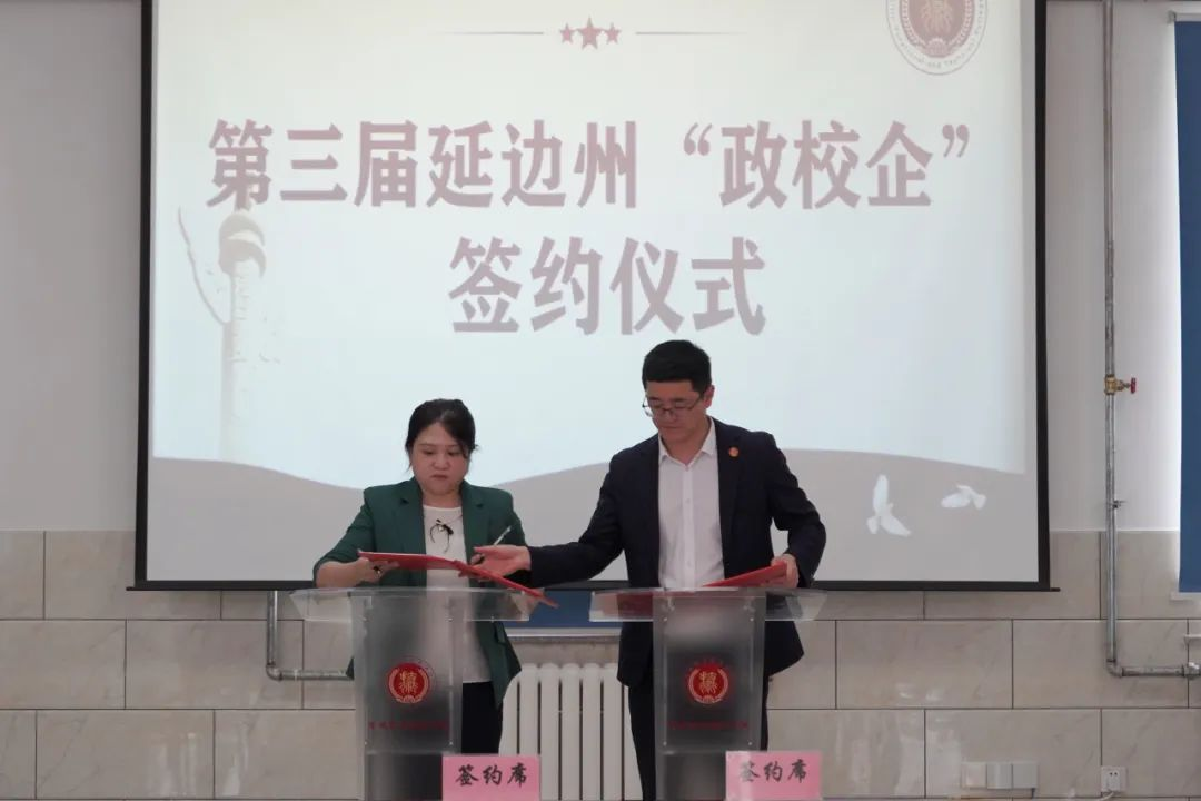 (通讯员 修丽颖)为进一步深化产教融合、加强校企合作,提升应用型人才培养和服务地方经济发展能力,确保毕业生真正实现高质量就业。6月13日上午,我校在行政楼三楼西侧会议室举行第三届“延边州”政校企签约仪式。龙井市人社局人才中心主任焦荣丰、延边天下健身管理有限公司领导吴梅、延吉市珠峰体育培训中心领导杨梅、延吉市晴海蓝天职业培训学校校长迟玉静、吉林省世正电商产业服务有限公司总经理戚馨月、吉林省众德鸿升文化传媒有限公司董事长宝喜军、吉林省育鑫亨医美咨询服务管理有限公司董事长于占江,我校就业处副处长吴政珉出席签约仪式。签约仪式由我校经济管理学院副院长杨冬吉主持。