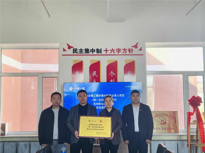 (通讯员 马千兴)10月16日上午,教育部第三期供需对接就业育人项目授牌仪式在我校智能制造学院举行。一砖一瓦科技有限公司东北区域高校经理王金凤,智能制造学院党总支副书记齐迹、副院长肖建伟及学院部分教师出席活动。