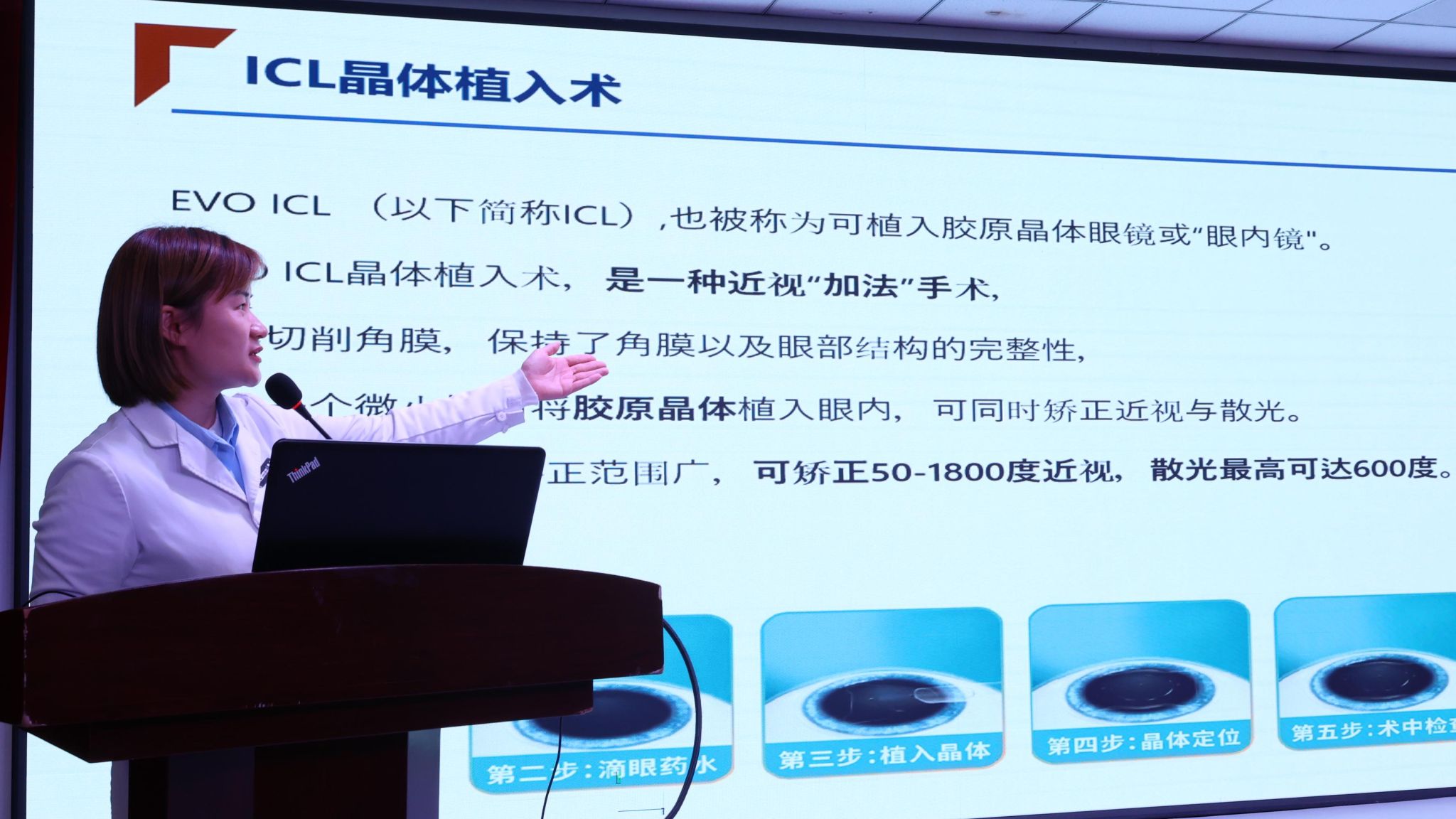 讲座上,延吉眼科医院主任详细介绍了眼睛的构造,包括眼球壁,眼内晶状体和玻璃体。还介绍了近视眼的小帮手框架眼镜和隐形眼镜。