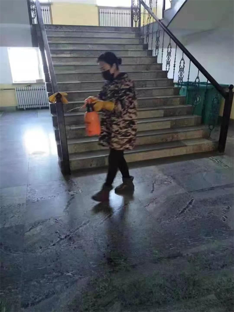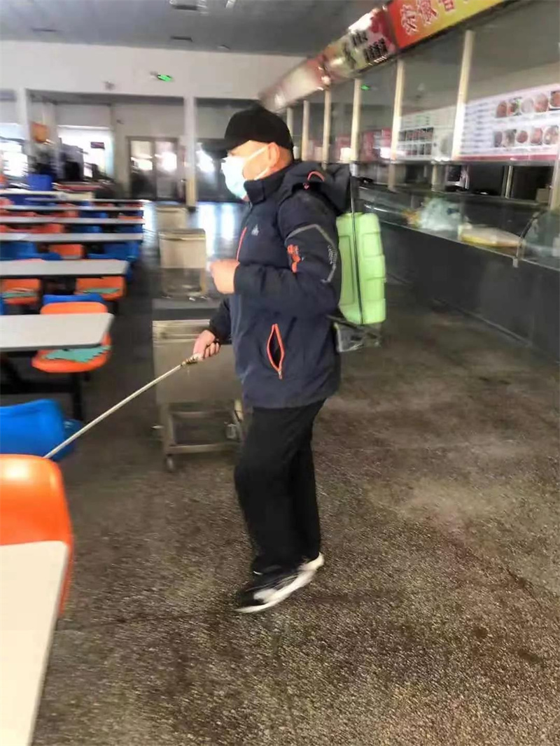 后勤工人在做好自身防护的前提下,利用符合防疫要求的药物喷剂,每天3次不留死角的喷洒,并做好消毒记录。