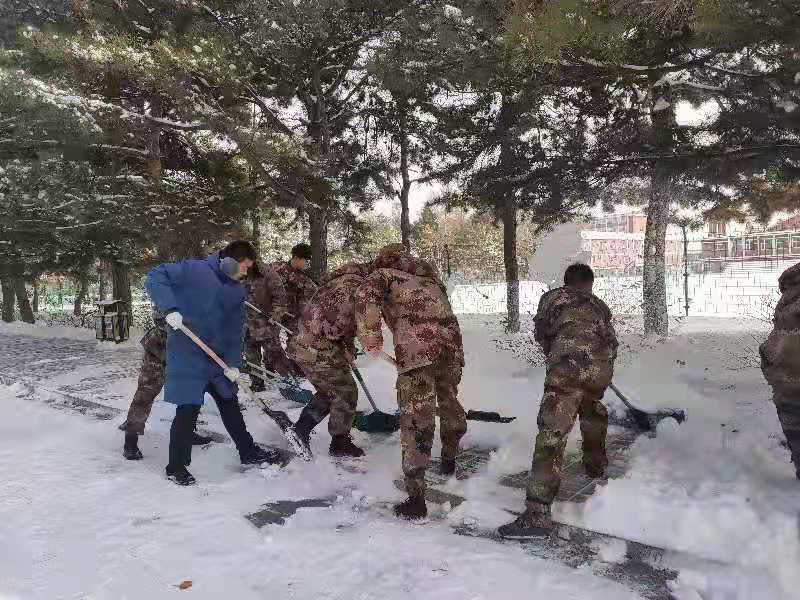 雪后气温骤降,室外天气寒冷,但这丝毫没有削弱学生工作处老师和大学生预备连同学们的劳动热情。他们积极、迅速投入到活动中。铁锹、簸箕、笤帚等工具大派用场,大家团结一致、各显神通,雪厚天冷也丝毫不影响他们的工作效率,扫雪队伍成了校园里一道靓丽的风景线。大家团结协作,干劲十足,经过几个小时的奋战,路面终于恢复了通畅,除雪任务圆满结束。