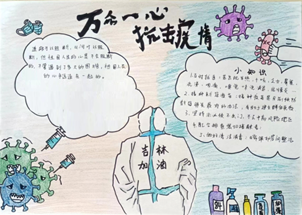 为引导国产高清在线精品一区二区三区学生弘扬伟大抗疫精神,在抗疫关键时期积极传递正能量,充分发挥思政课主渠道、主阵地作用。思政部自4月18日以来组织全体学生在课余时间通过手绘画报的方式,向抗疫一线的英雄致敬。同时,倡导全校学生主动担起社会责任,正确面对困难,承接历史使命,不负韶华,勇立潮头,做新时代合格的新青年。