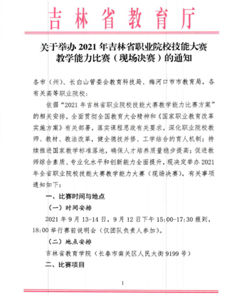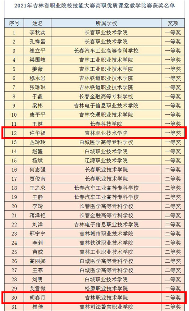 为促进教师综合素质、专业化水平和创新能力全面提升,吉林省教育厅举办了2021年全省职业院校技能大赛教学能力大赛(现场决赛)。经综合评审,我校教师许华福荣获一等奖,教师胡春月荣获二等奖,教师仲秋雯荣获三等奖。