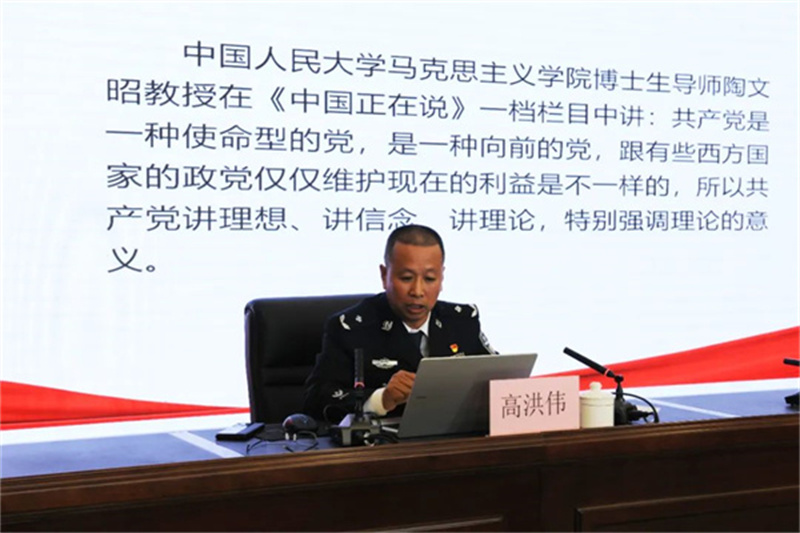 启动仪式结束后,“海兰江畔党旗红”党建党委理论学习中心组(扩大)学习会议举行,开山屯出入境边防检查站党委书记、站长高洪伟就学习贯彻党的二十大精神进行了专题授课。