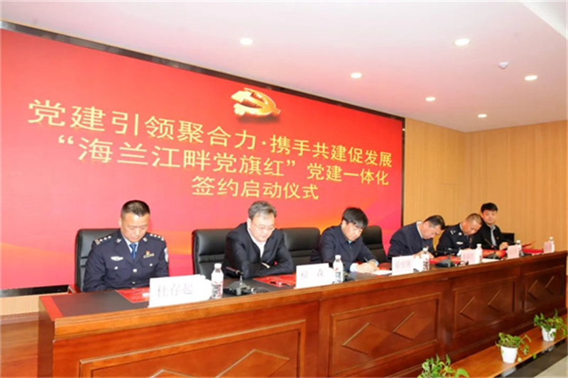 4月14日上午,“党建引领聚合力·携手共建促发展”暨“海兰江畔党旗红”党建一体化签约启动仪式在开山屯出入境边防检查站举行。
