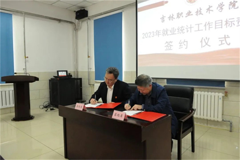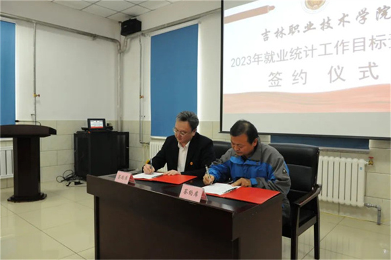 柳森与各二级学院院长逐一签订《2023年就业统计工作目标责任书》。