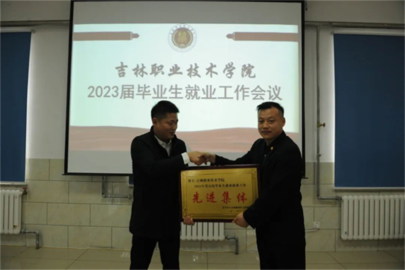 李可心宣读了2022年度就业工作表彰奖励决定,授予医药学院“2022年度‘专升本’教育工作先进集体”称号;授予智能制造学院、经济管理学院“2022年度就业工作先进集体”称号;授予刘刚、兰春伟、陈宏亮三名辅导员“2022年度就业工作先进个人”称号。由崔振宇、柳森为获奖集体、个人颁奖。