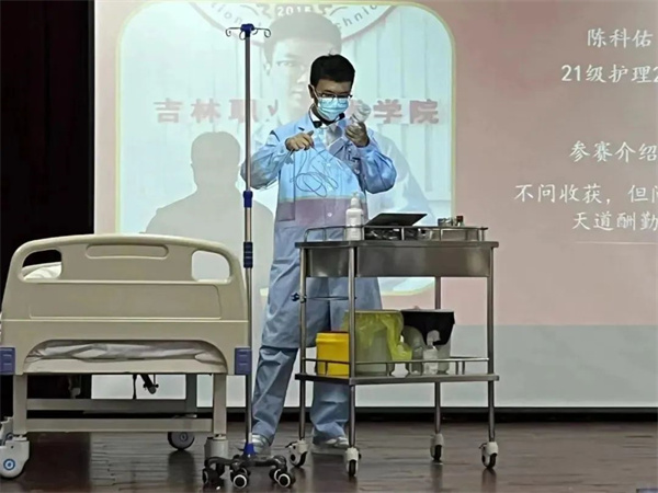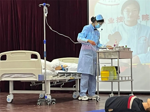 经过综合选拔,21级护理专业12名学生入围本次大赛,选手根据抽到的项目进行相应的操作,大赛现场紧张激烈,参赛选手沉着冷静、动作娴熟,把快、准、稳的准则体现得淋漓尽致,在切磋技能的同时,充分展现出护人员的专业素养,生动展示了护理专业的教学实践成果。