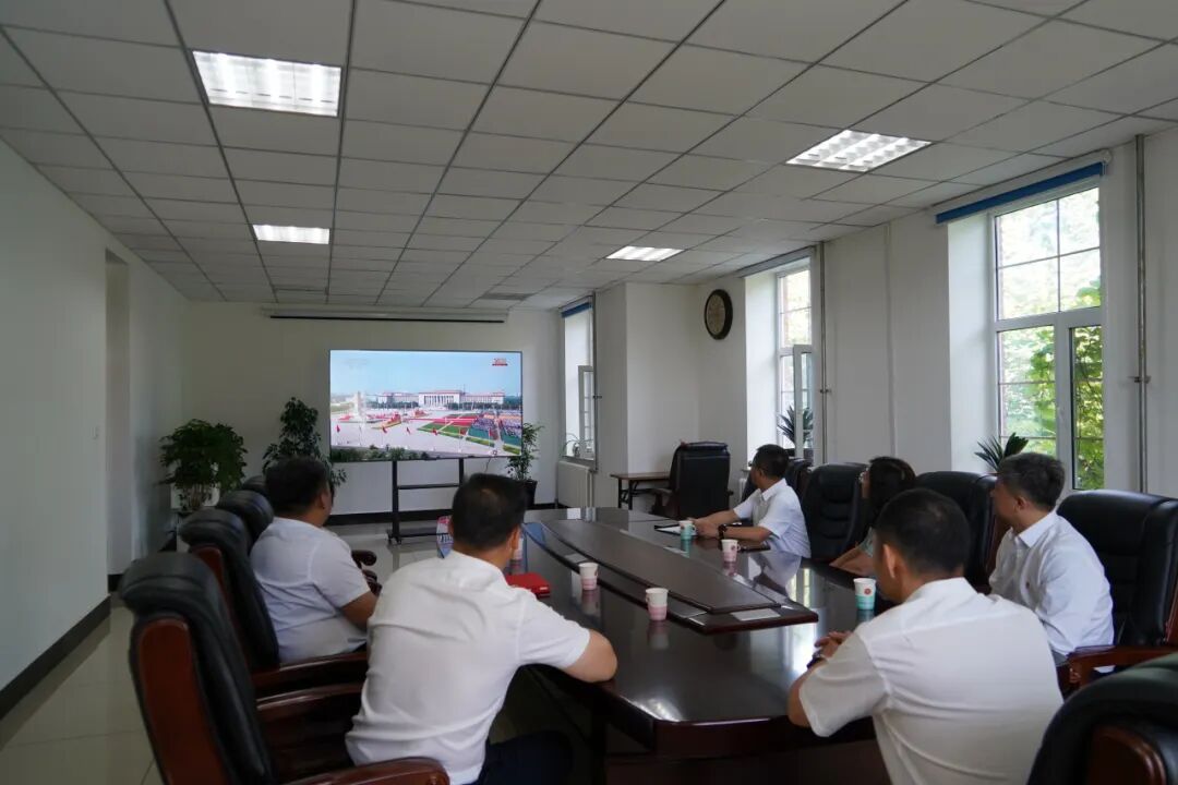 校党政领导在行政楼二楼会议室集中收看纪念大会直播