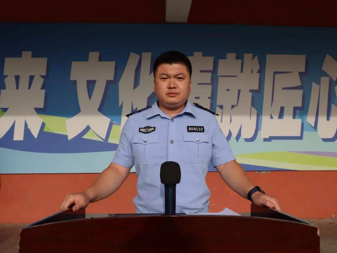 (通讯员 白洁)为切实加强新学期校园安全管理,提升新生的安全防范意识和自我保护能力,营造平安、和谐、稳定的校园环境,9月3日,我校特邀龙井市梨园派出所副所长金靖勋、法治辅导员王俊松警官走进校园,为全体新生带来主题为“平安开学季 安全第一课”的安全教育专题讲座,本次讲座由王俊松警官主讲。