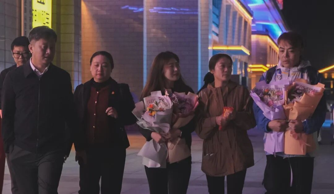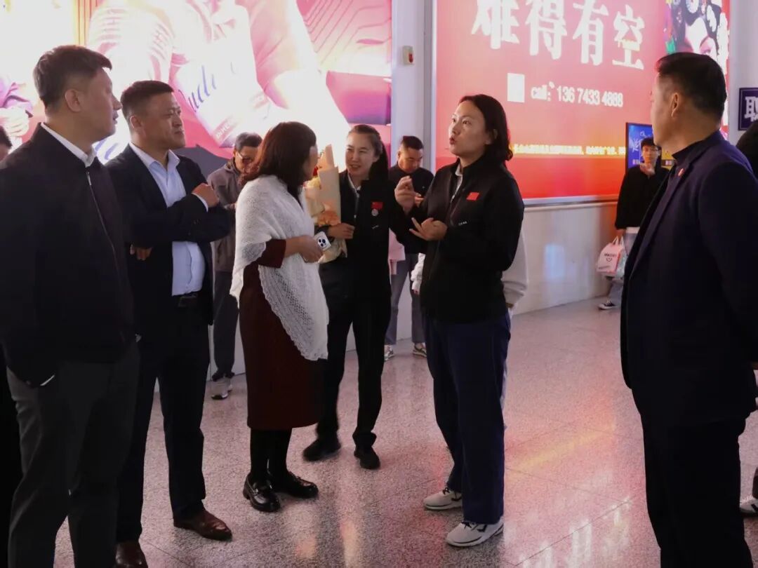 参赛师生返程当日,校党政领导班子成员专程前往延吉西站迎接。当载有团队的高铁到站,班子成员快步上前与师生一一握手问候,送上鲜花,现场师生拉起欢迎横幅,热烈氛围引得过往旅客驻足。